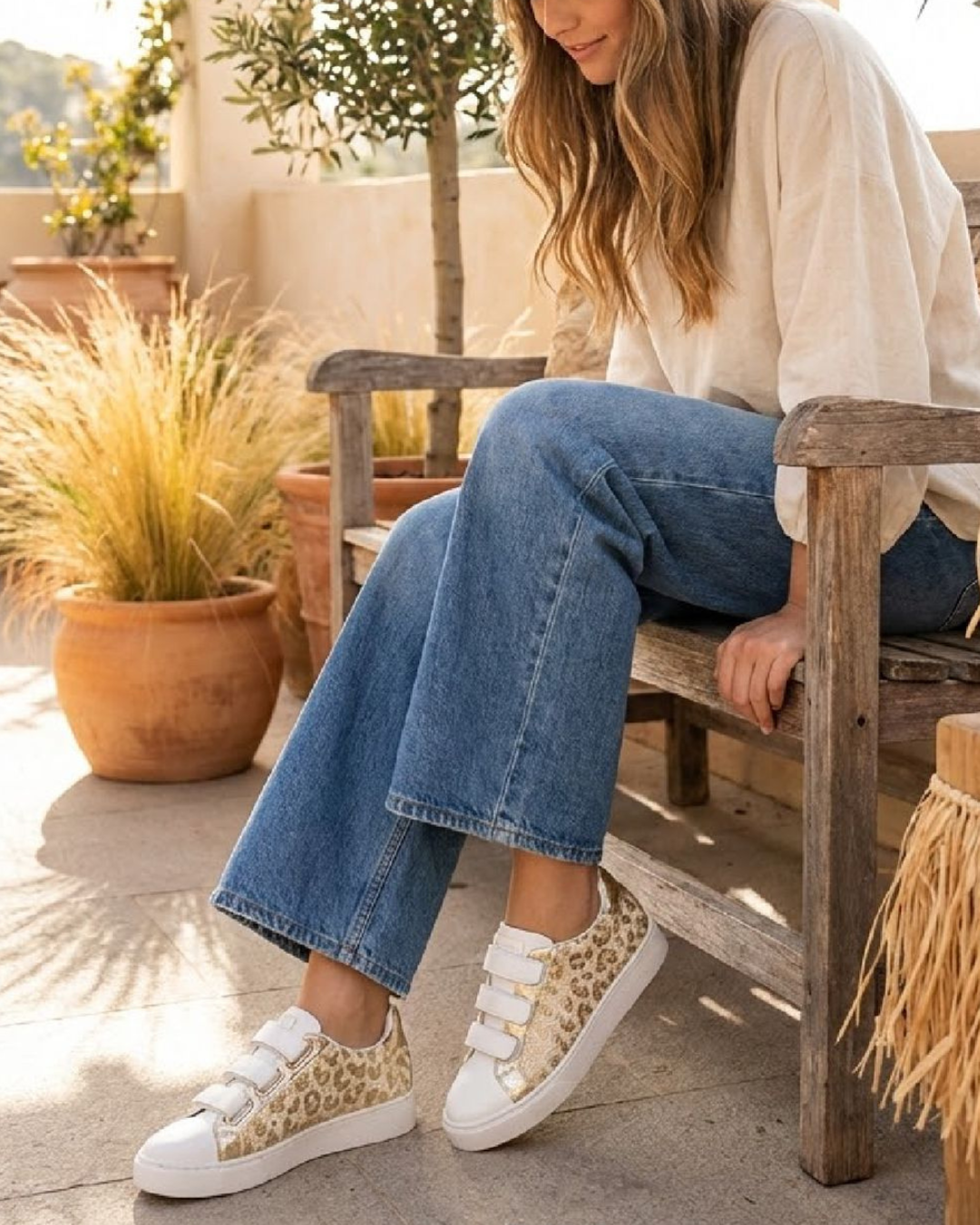 Le système de fermeture à scratchs assure un enfilage facile et un excellent maintien, tandis que la semelle blanche offre un confort optimal pour reconnaître un style casual chic au quotidien.