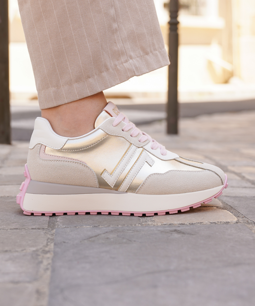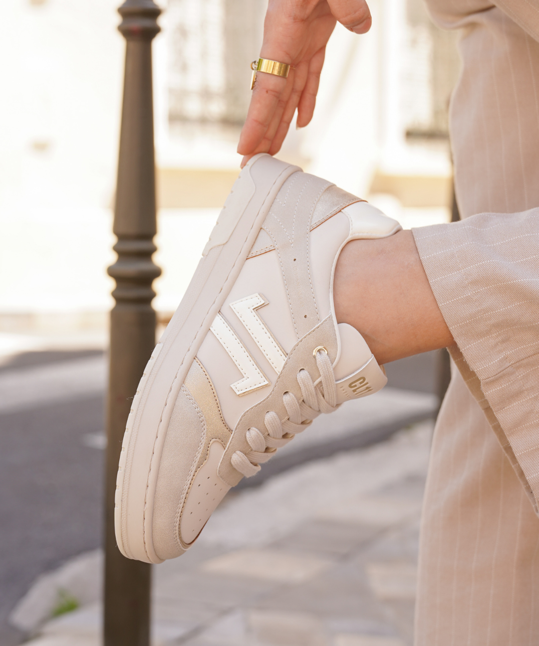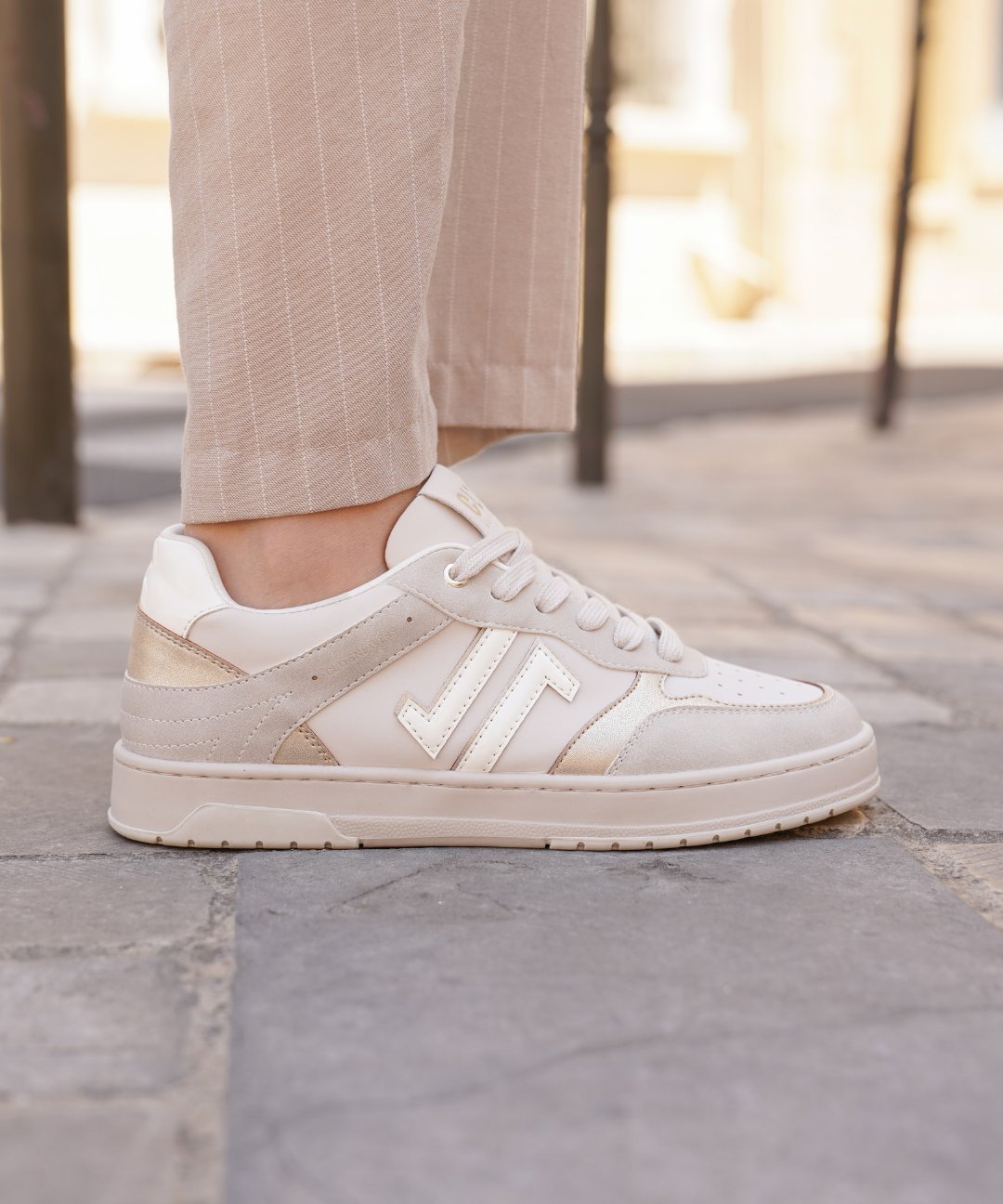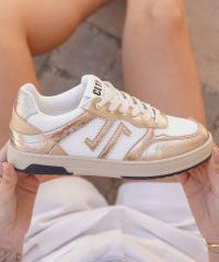 BASKETS FEMME DORÉ & BEIGE – SEMELLE GOMME CONFORT