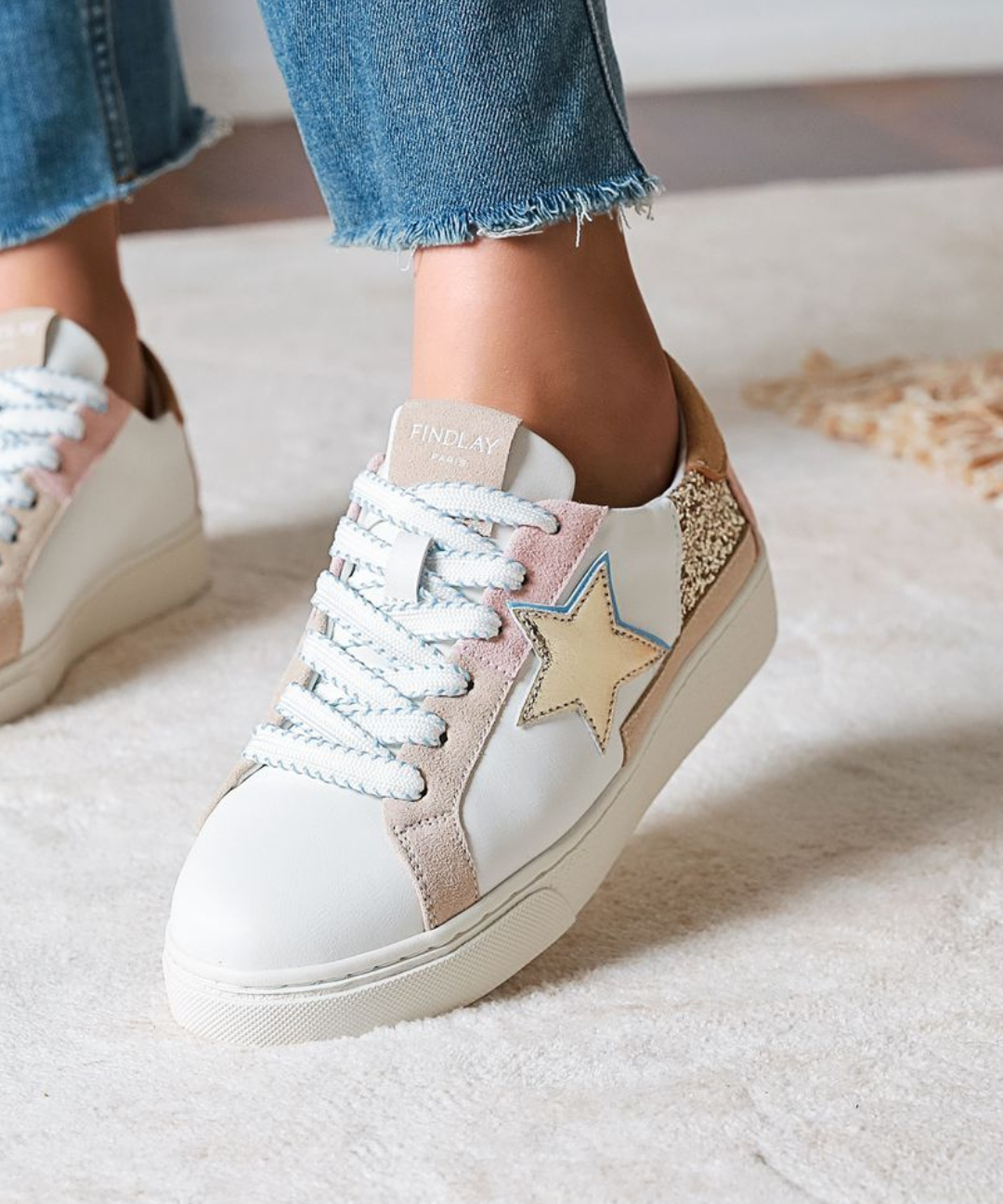 BASKETS FEMME BLANC & NUDE – ÉTOILE OR MÉTALLISÉ
