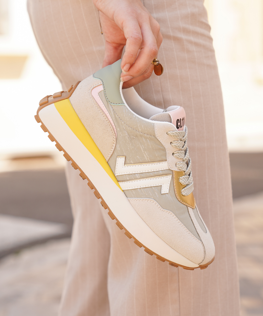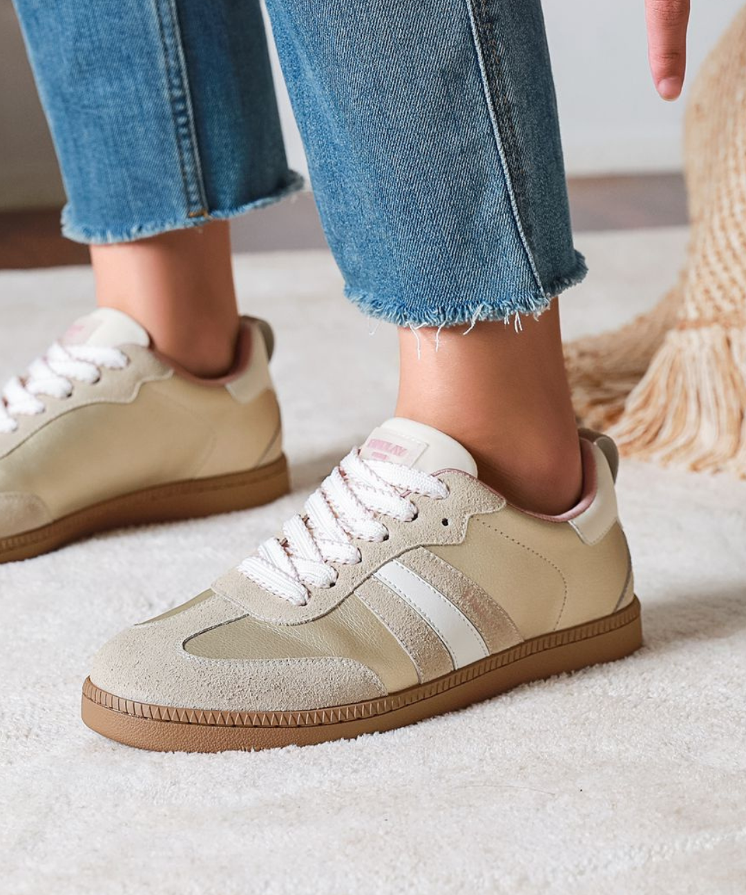 BASKETS FEMME BEIGE – DÉTAIL KAKI – SEMELLE ÉPAISSE