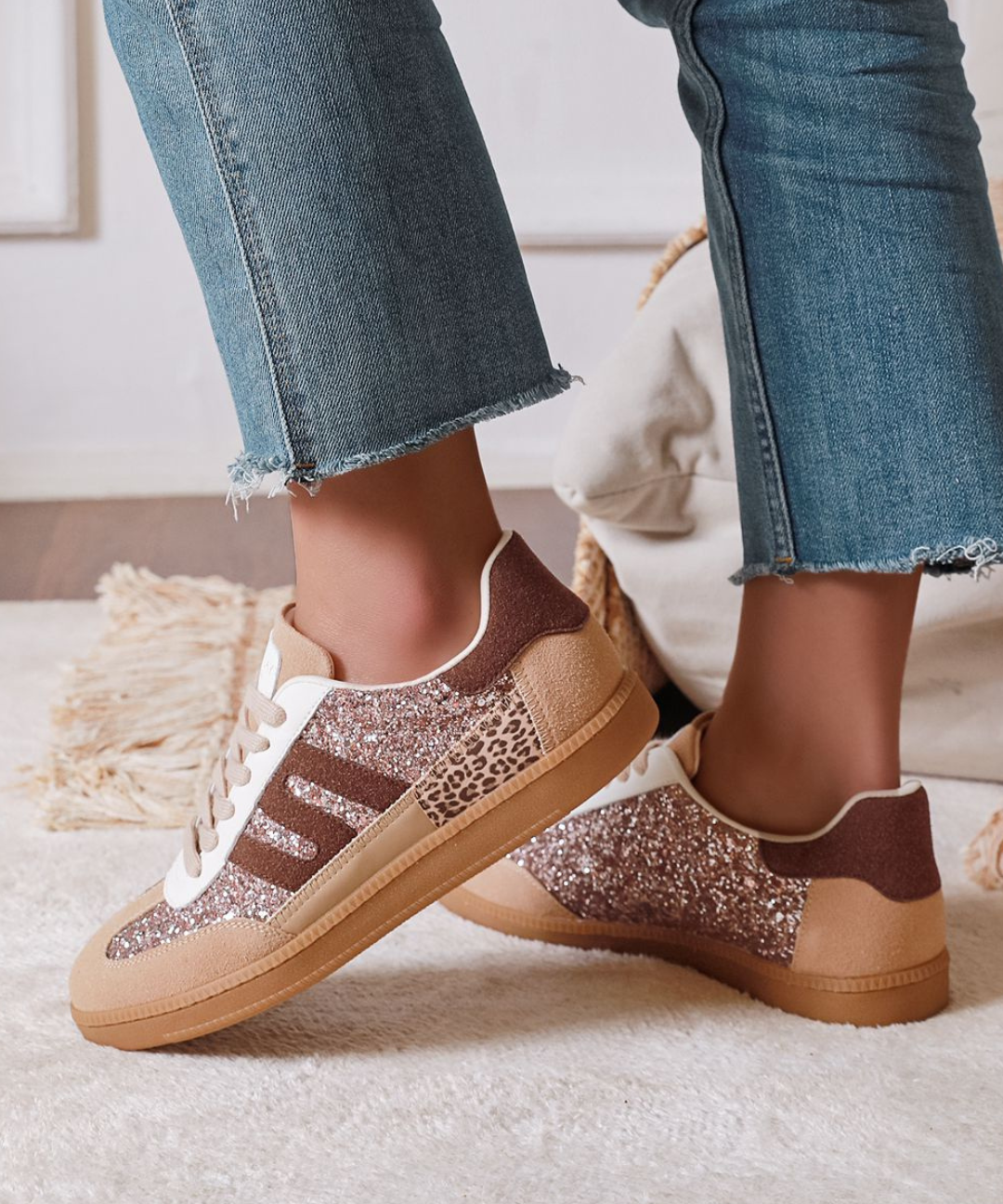 BASKETS PAILLETÉES À DÉTAIL LÉOPARD – TOUCHE CHIC & URBAINE