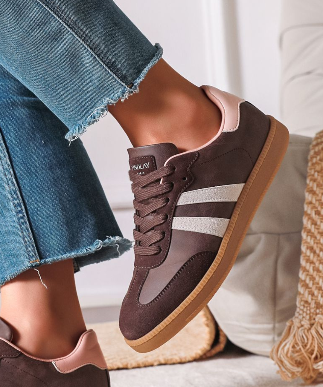 BASKETS MARRON À BANDES CONTRASTÉES