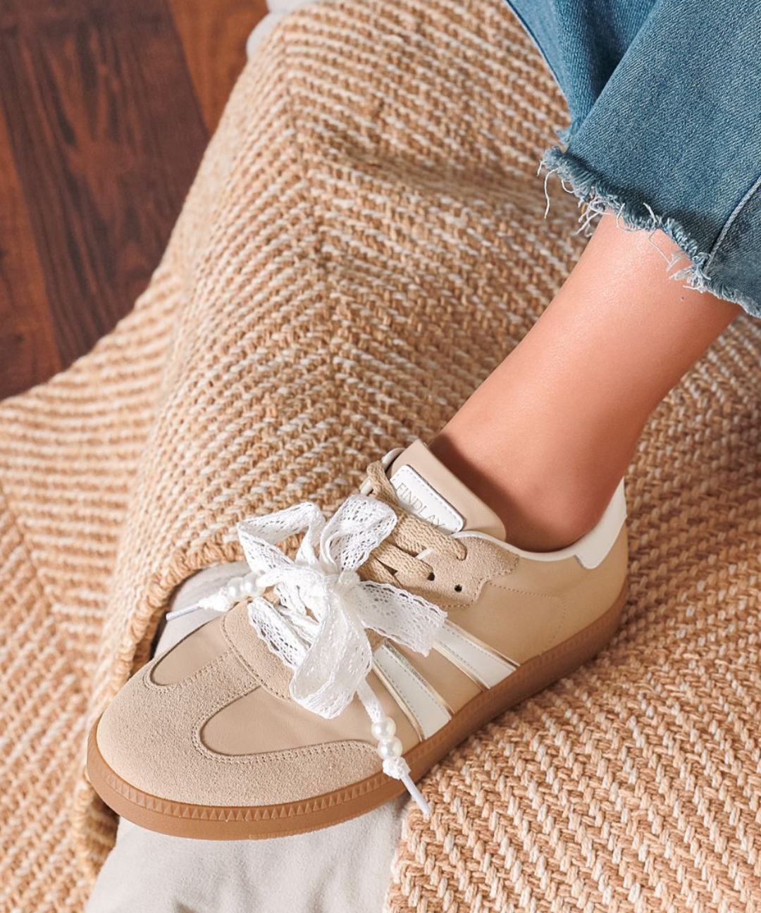 BASKETS BEIGE À LACETS DENTELLE