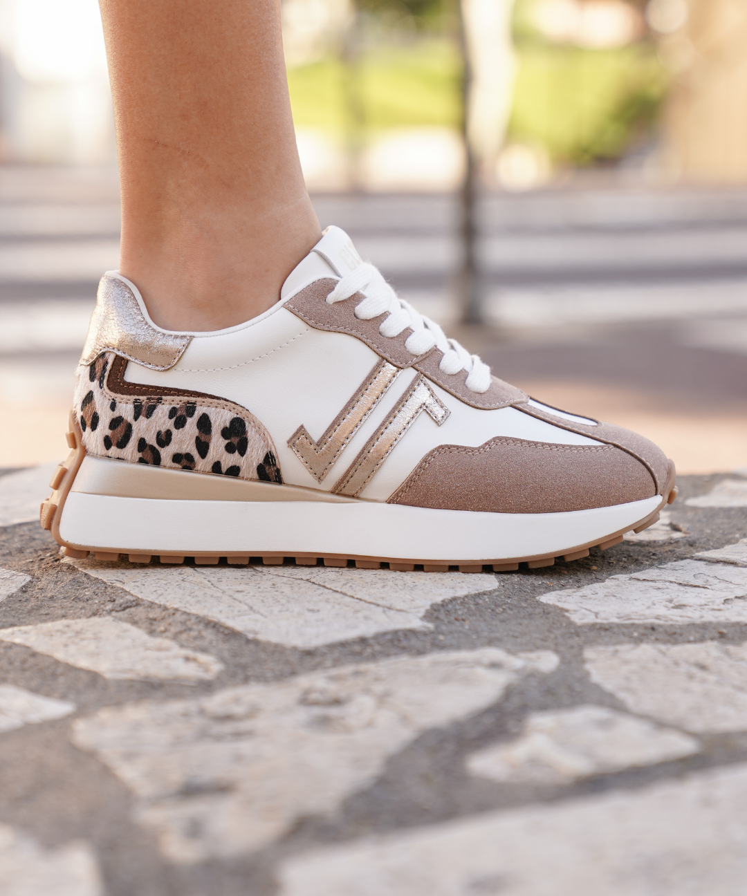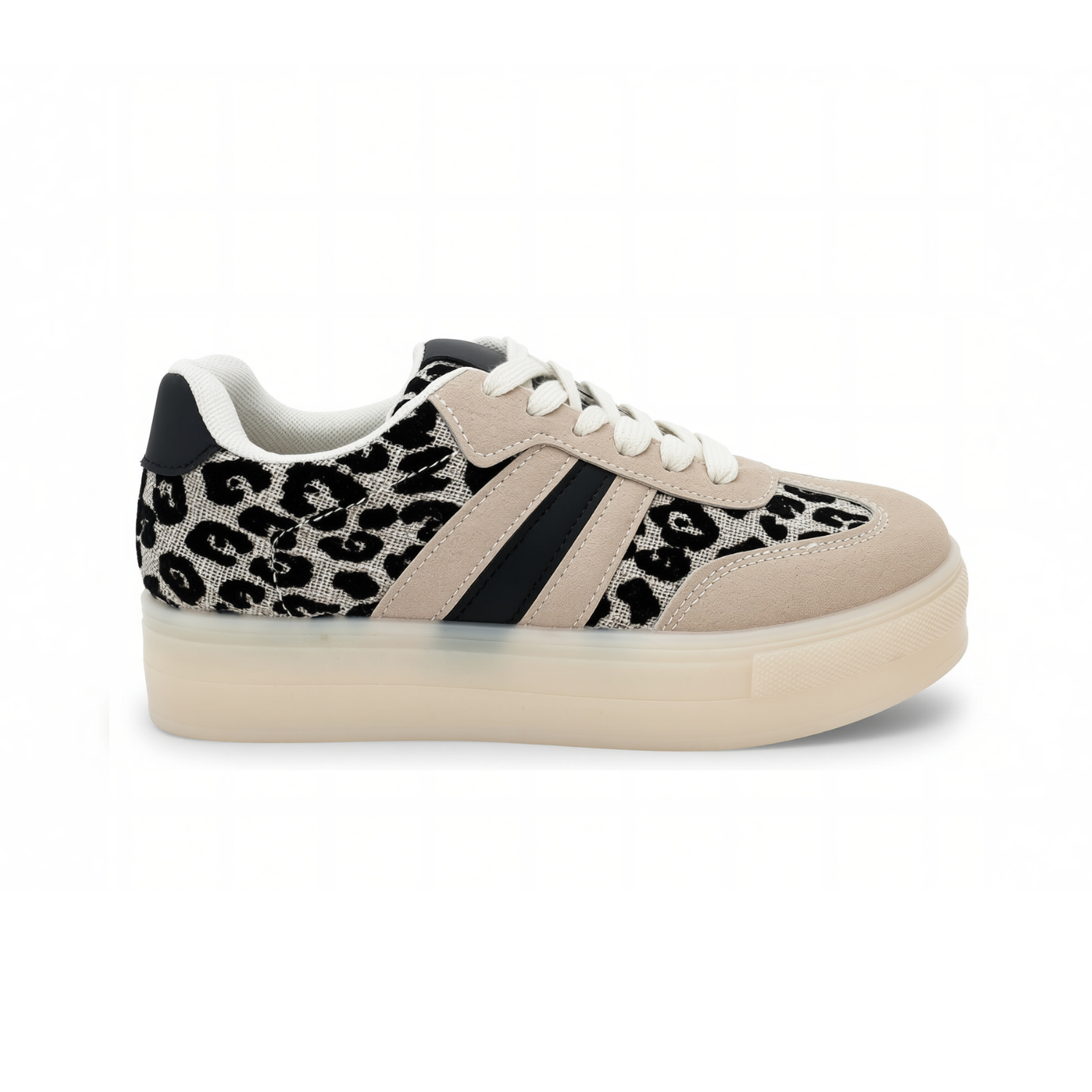 BASKETS FEMME BEIGE & NOIR LÉOPARD – SEMELLE PLATEFORME