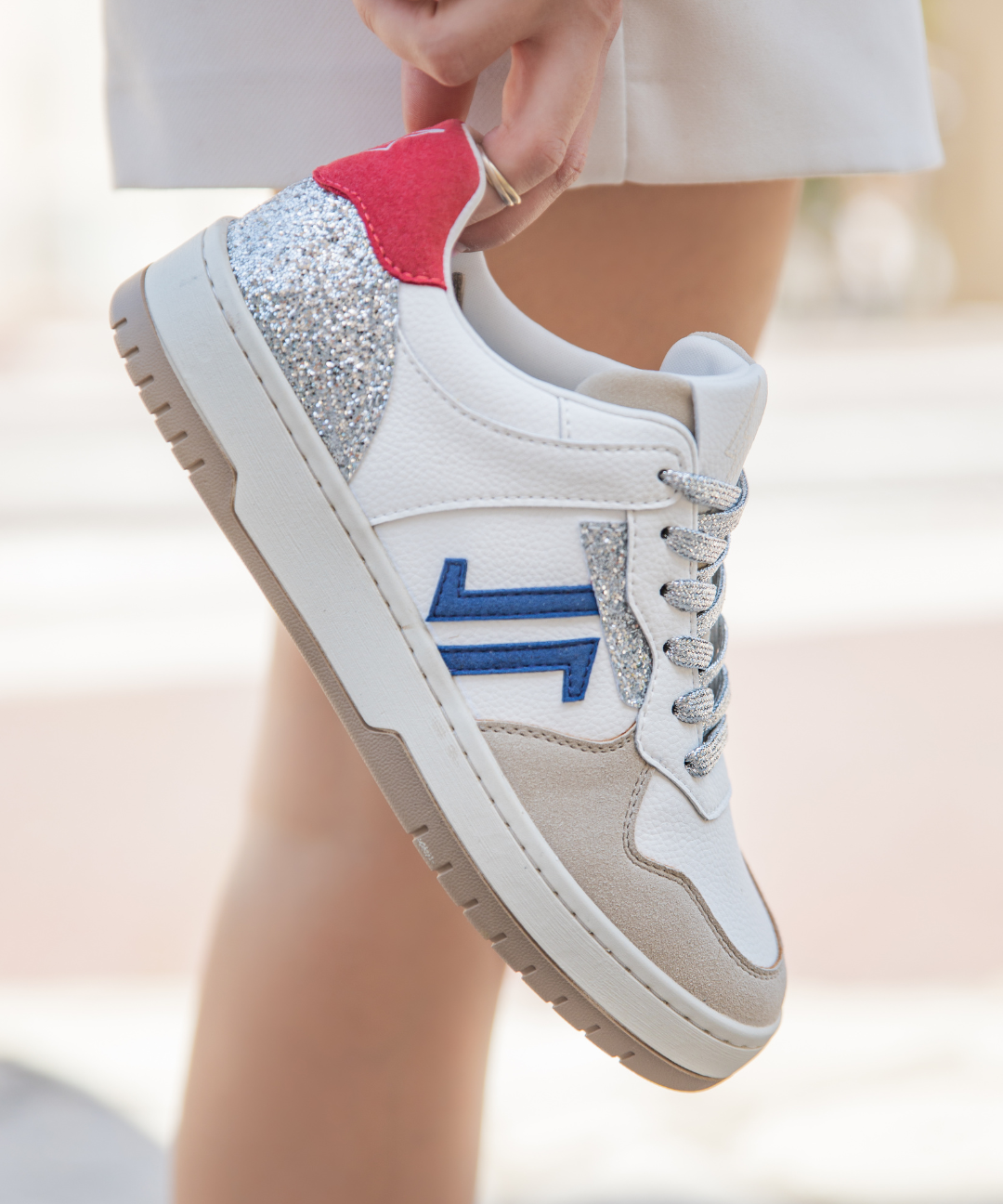 BASKETS FEMME BLANCHES AVEC FINITIONS BLEU ET GLITTER