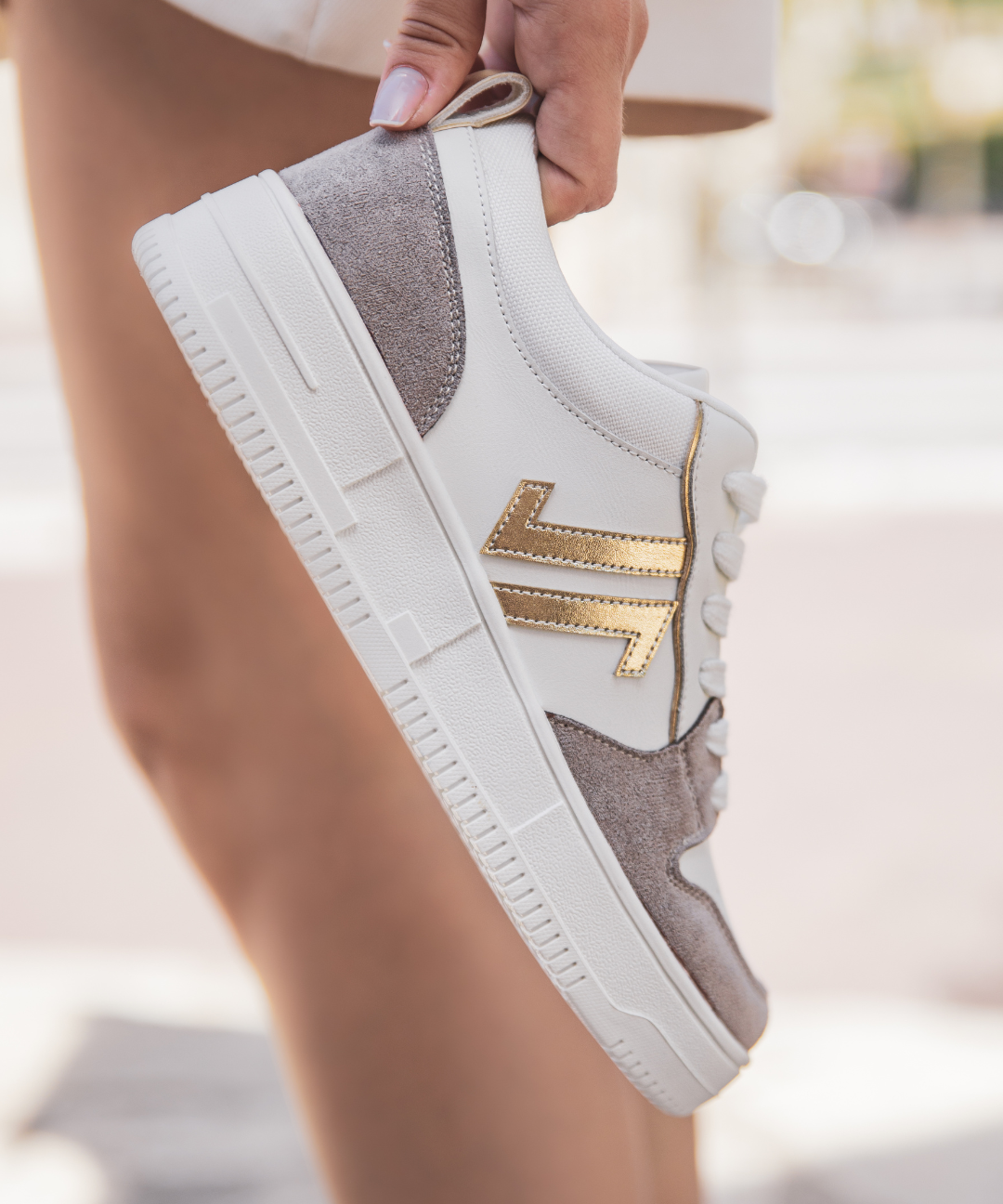 BASKETS FEMME BLANC & TAUPE – SEMELLE ÉPAISSE
