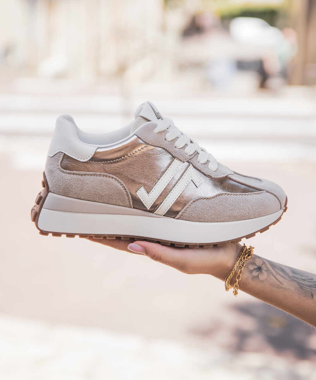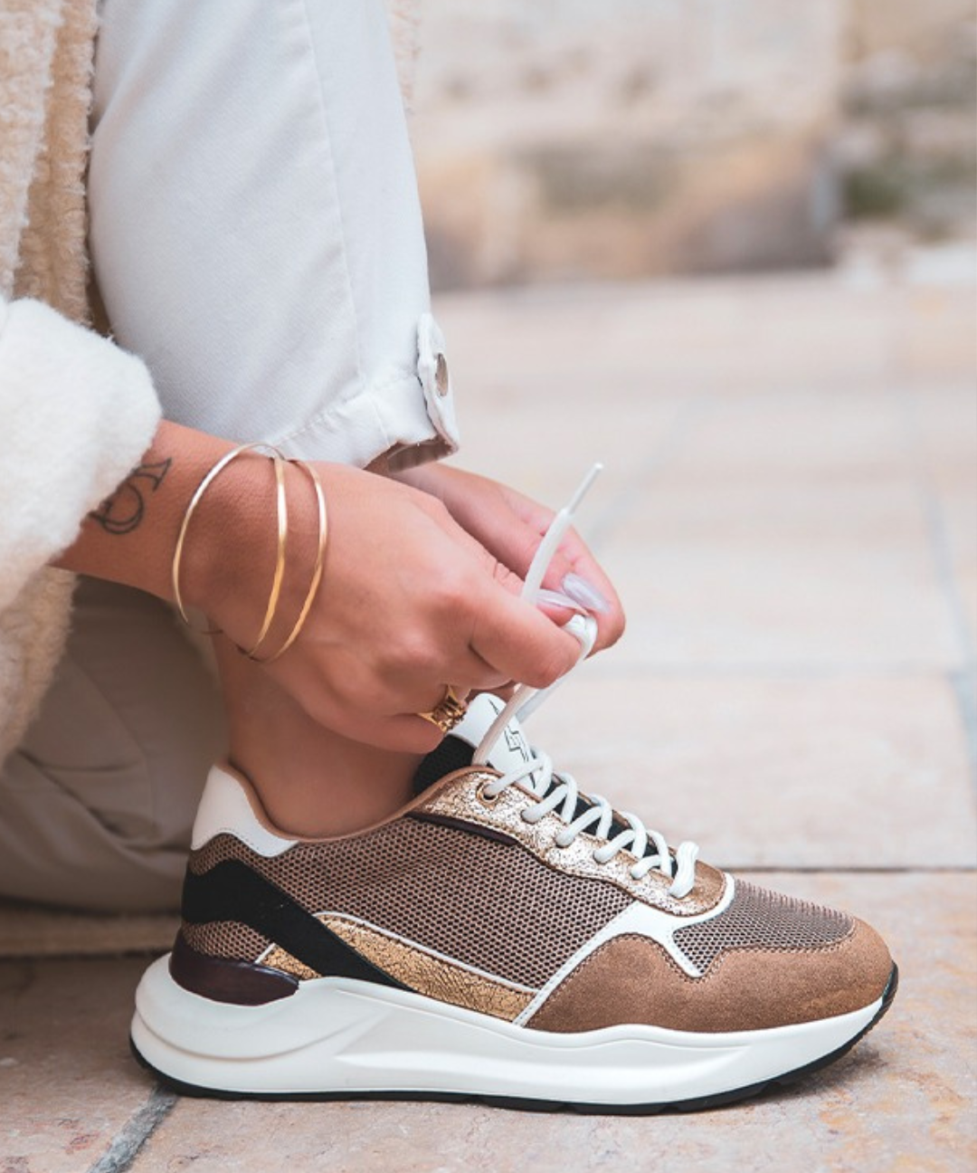 BASKETS FEMME CAMEL – DÉTAILS DORÉS – STYLE URBAIN