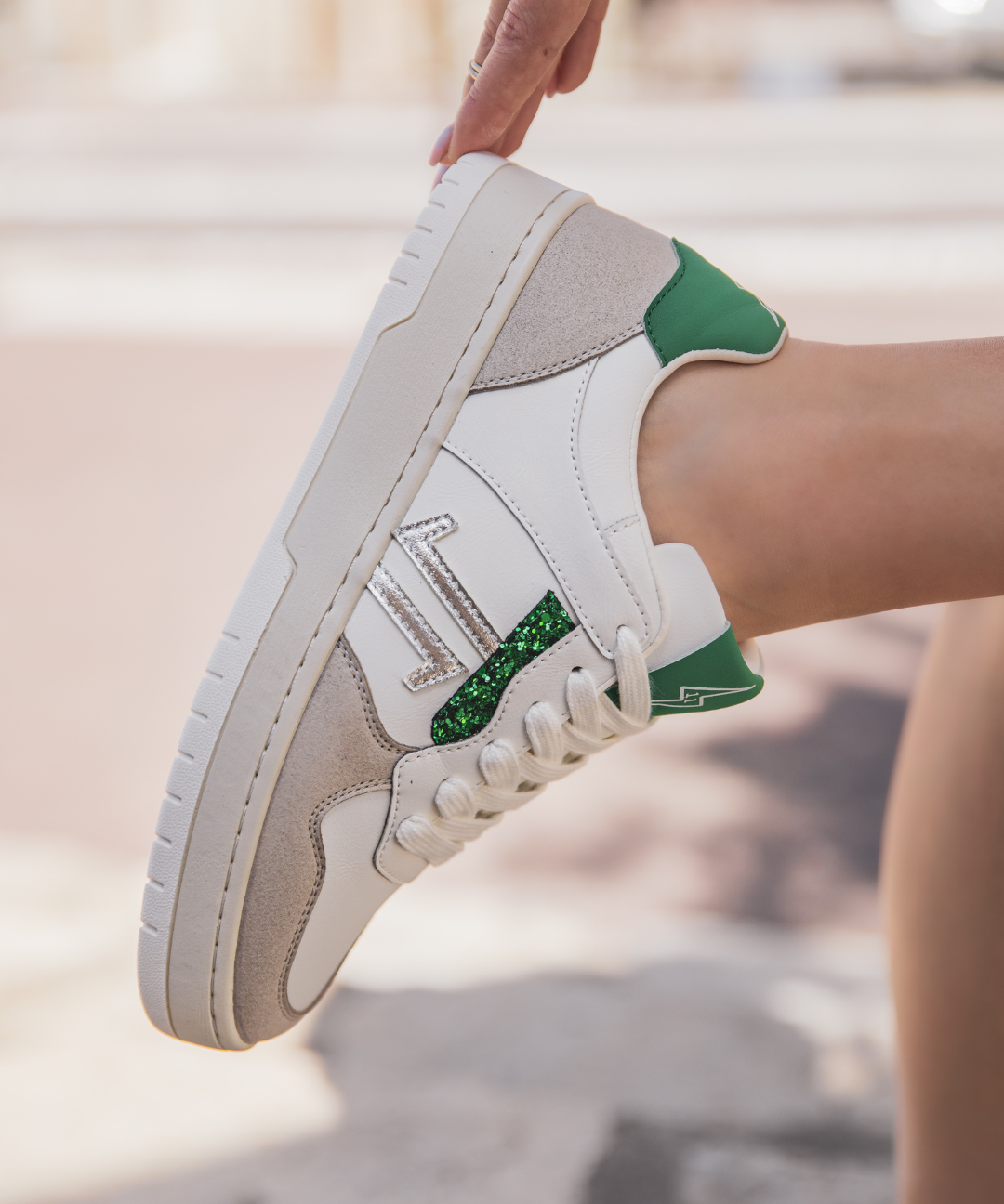 BASKETS BLANCHES À DÉTAIL VERT PAILLETÉ