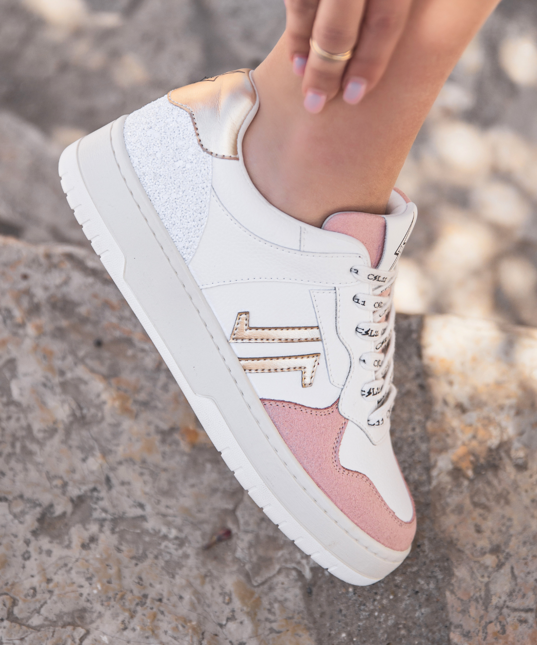 BASKETS BLANCHES ET DORÉ ROSÉ À LACETS