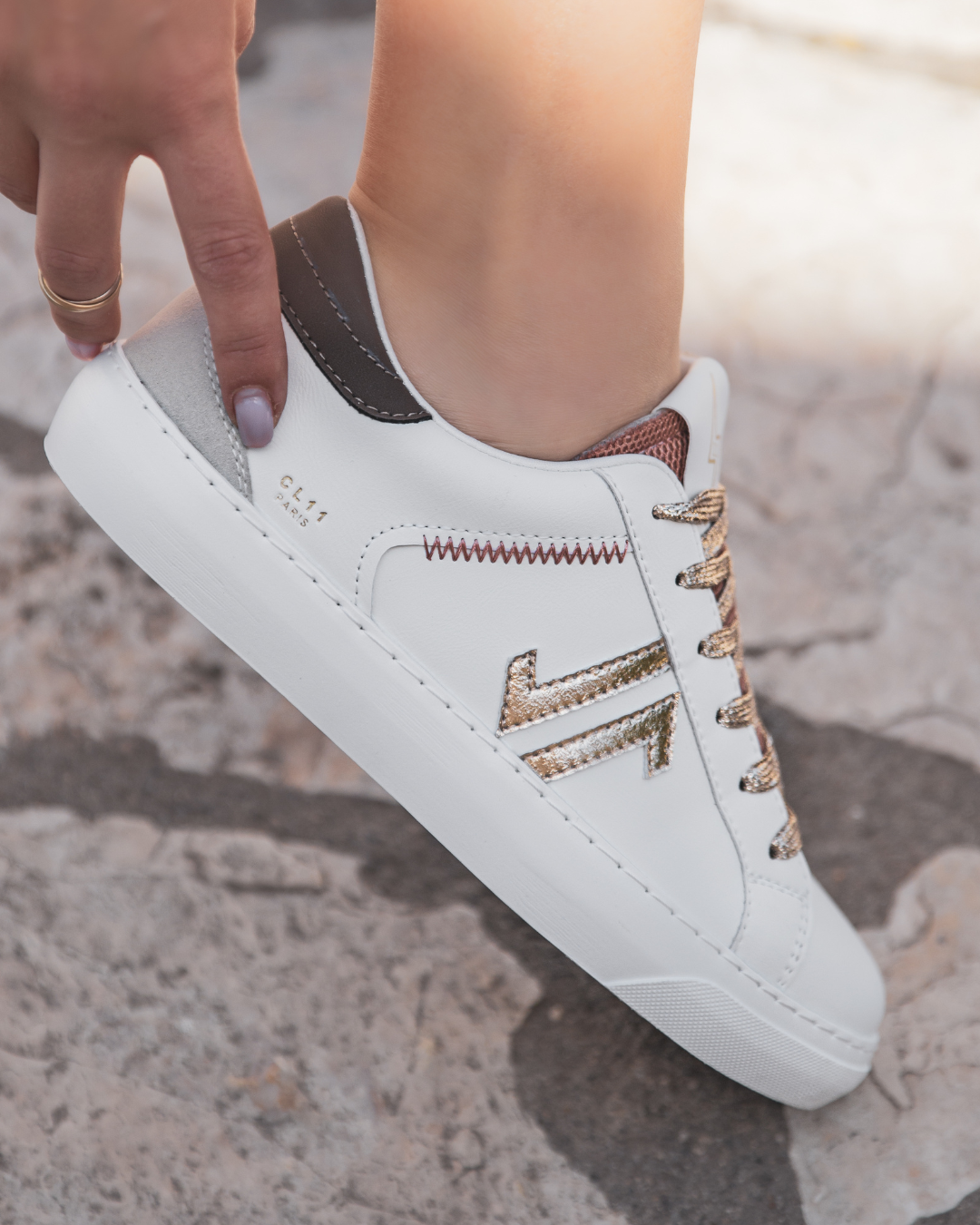 BASKETS BLANCHES DÉTAILS DORÉS & LACETS TEXTURÉS