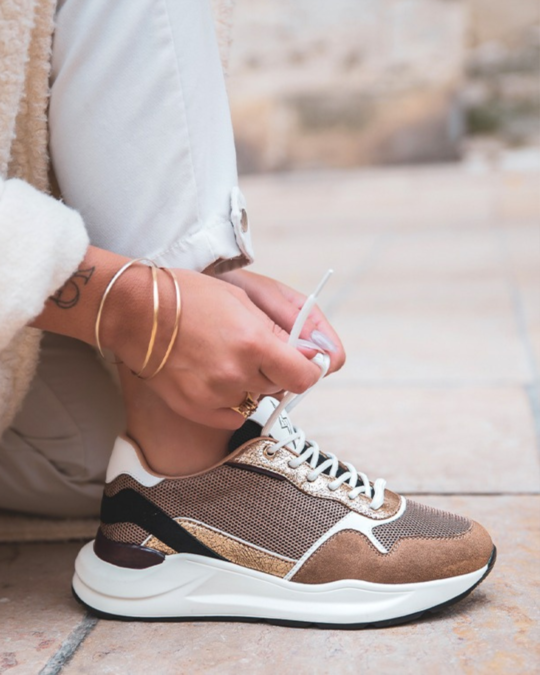 BASKETS FEMME CAMEL – DÉTAILS DORÉS – STYLE URBAIN