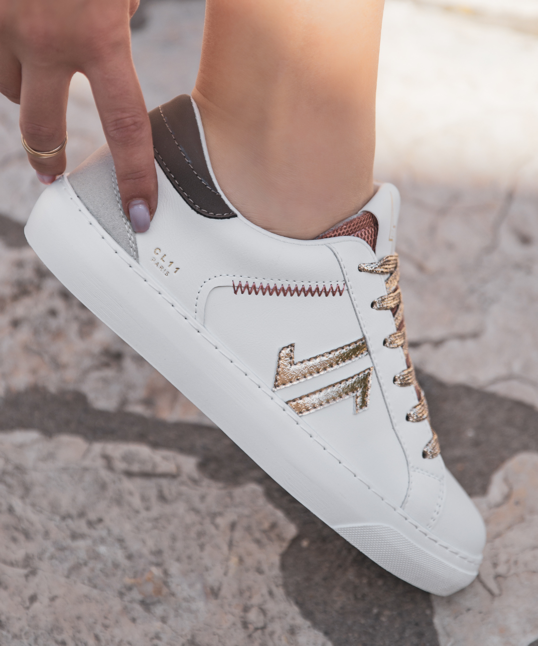 BASKETS BLANCHES DÉTAILS OR ROSE