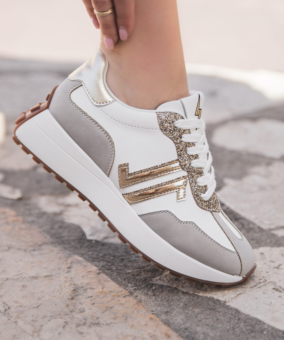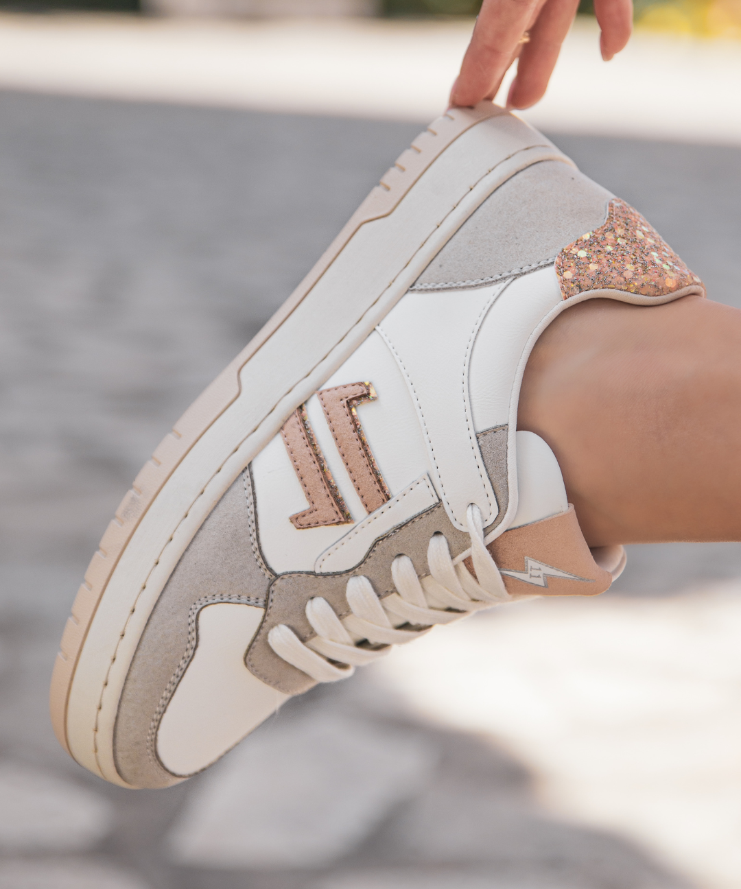 BASKETS BLANCHES ET BEIGE DÉTAILS DORÉS