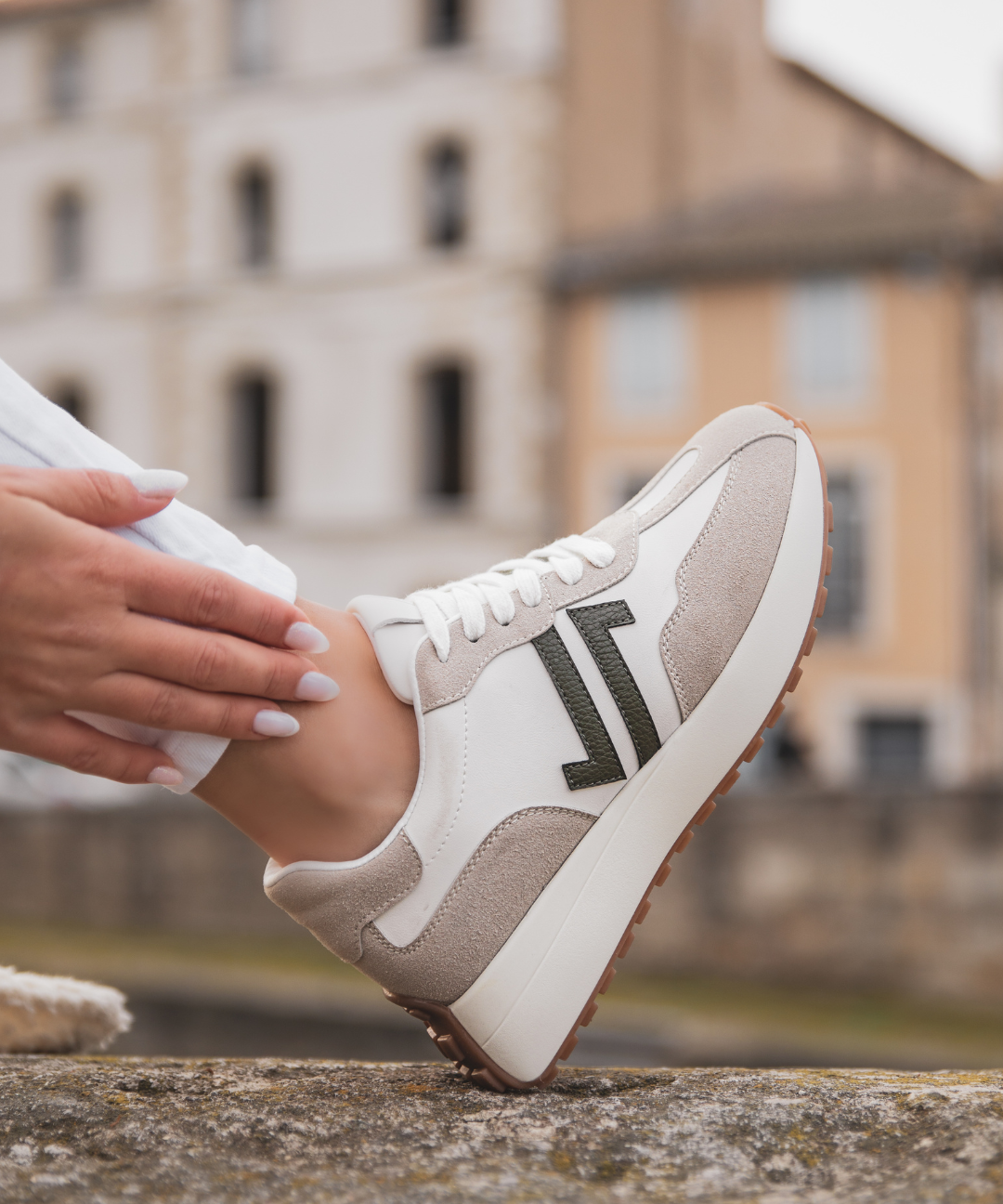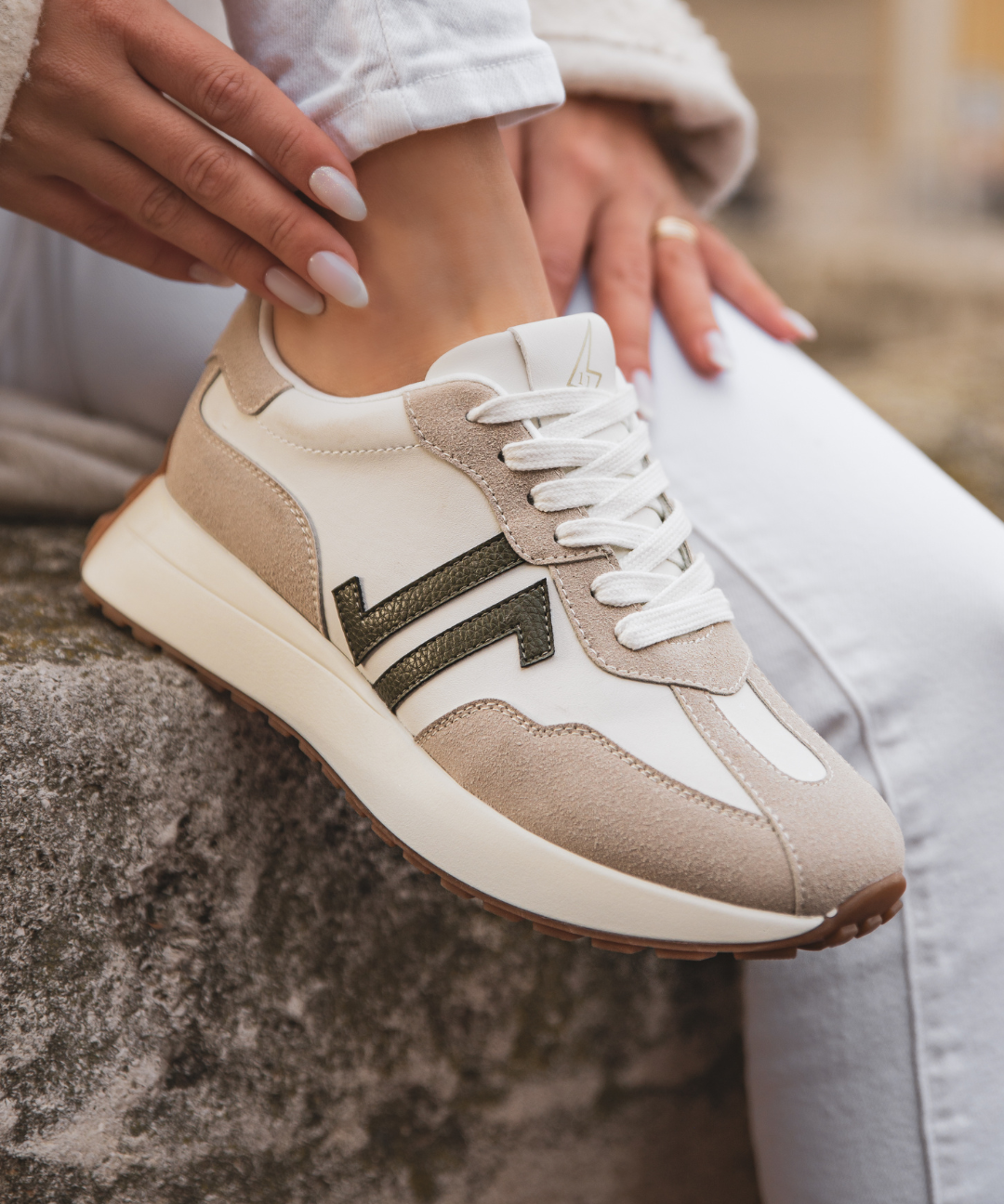 BASKETS FEMME BEIGE – DÉTAIL KAKI – SEMELLE ÉPAISSE